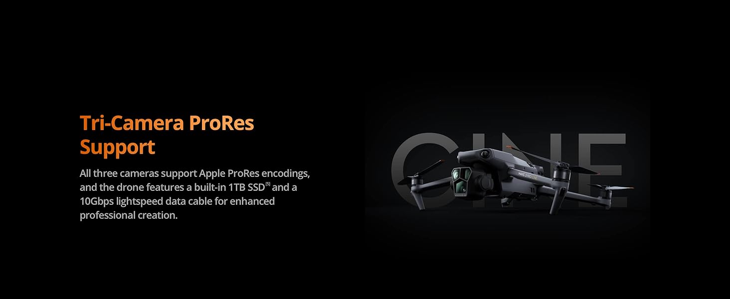 DJI Mavic 3 Pro Cine with DJI RC Pro (High-Bright Screen), Flagship Triple-Camera Drone, Tri-Camera Apple ProRes Support with 1TB of Storage, 3 Intelligent Flight Batteries, FAA Remote ID Compliant