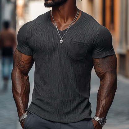 Product Name: Men's Casual Ribbed Cotton Blend V-neck Slim Fit Short-sleeved T-shirt