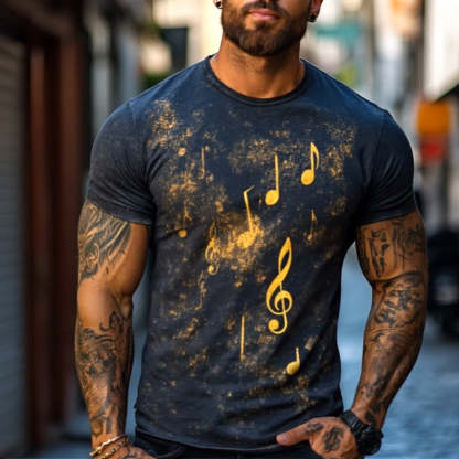 Product Name:Men's Retro Casual Explosion Note Printed Round Neck Short Sleeve T-shirt
