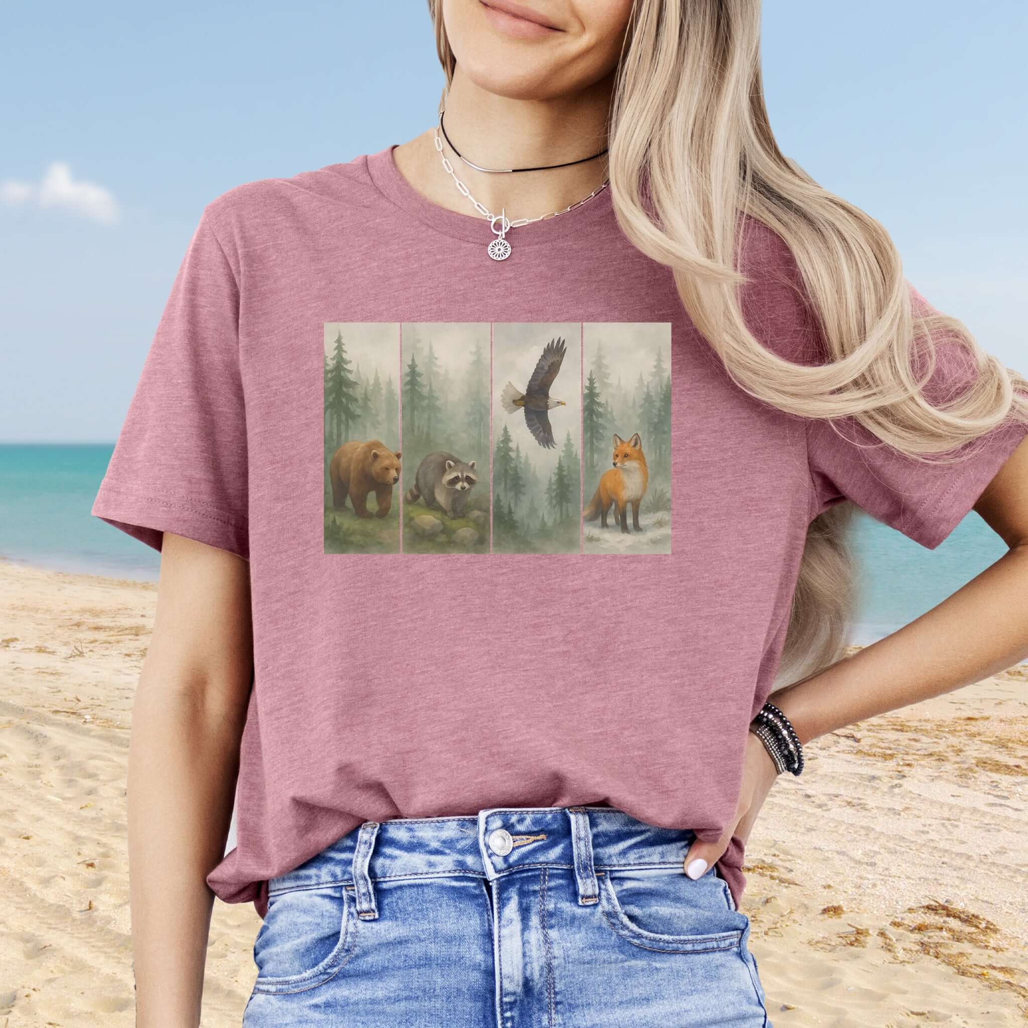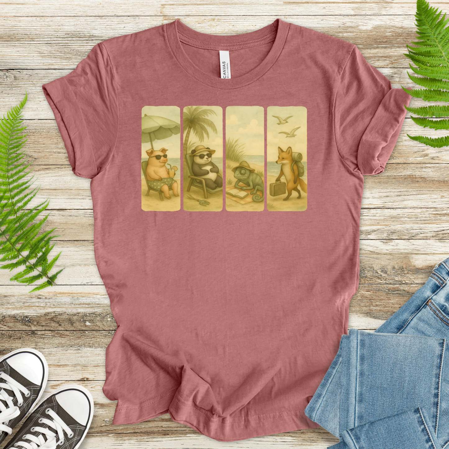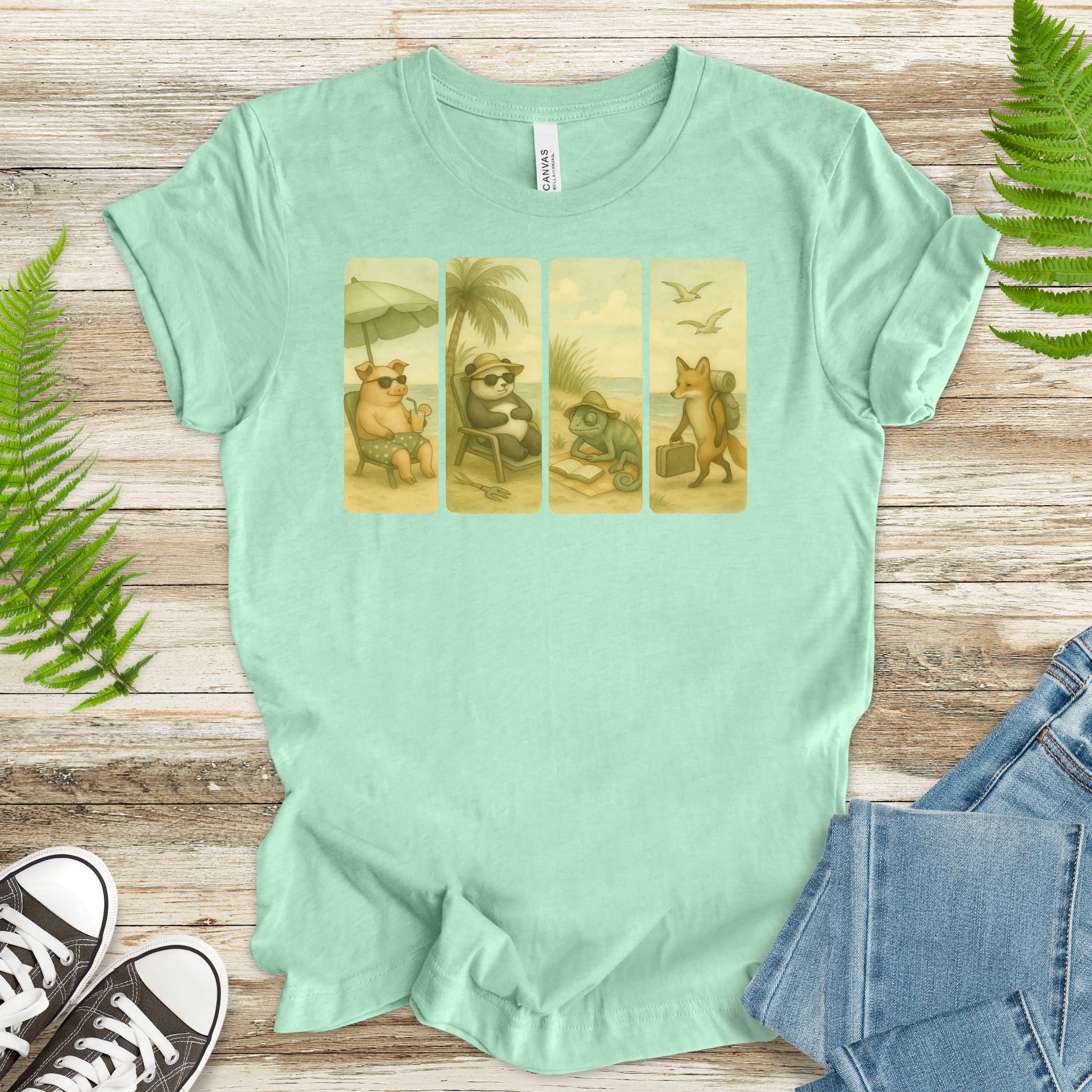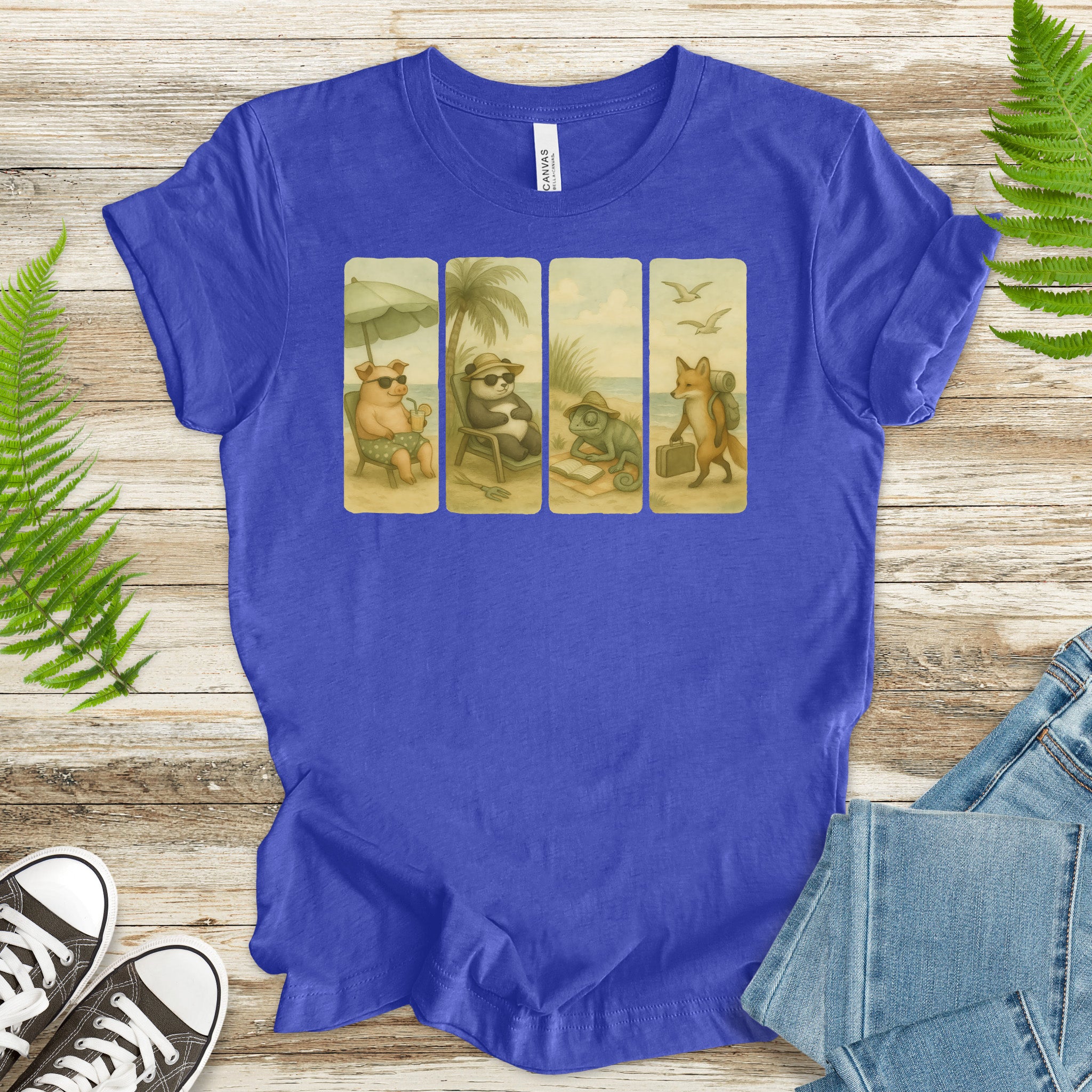 Beach Animal Strips T-Shirt – Cute Panda, Fox, Pig & Chameleon Vacation Tee