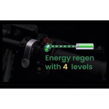 Under the skin, the Komodo packs a 32 kW peak electric motor (43 hp) with 8.6 kW continuous output and a jaw-dropping 754 Nm of peak torque, giving it 0–30 mph in just 1.9 s and 0–60 mph in 4.5 s, and a top speed of 66 mph . The bike’s power is managed through three ride modes—Eco, Sport and Hyper—and a four-level, thumb-adjustable regenerative braking system . Energy comes from a removable 4.4 kWh battery pack, delivering a combined range of around 70 miles at 30 mph and a full charge in approximately 1.5 hours; the pack is specified as a 96 V / 45 Ah lithium-ion unit .