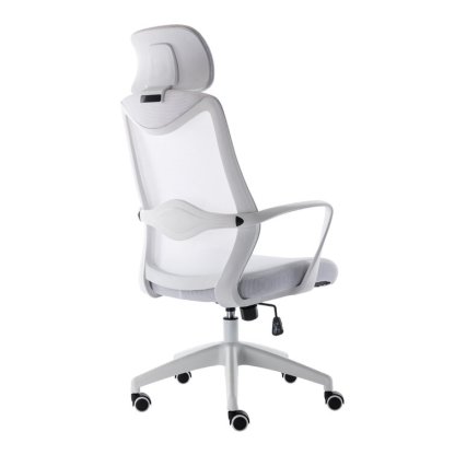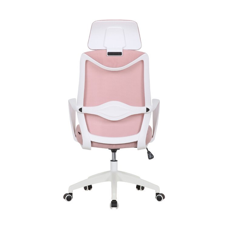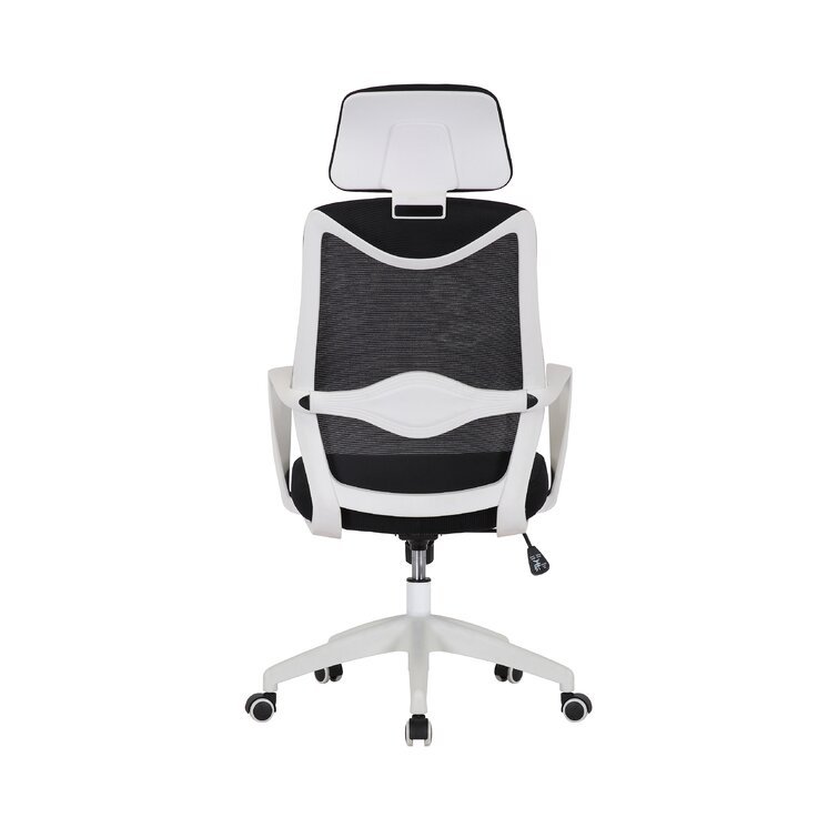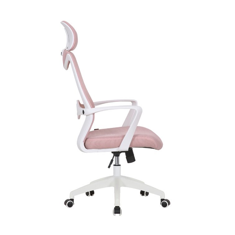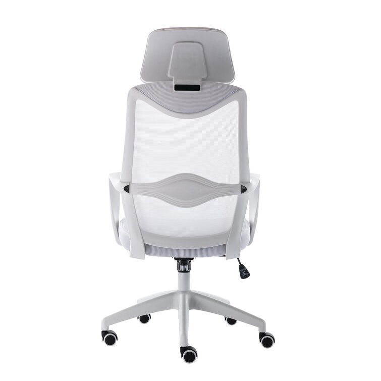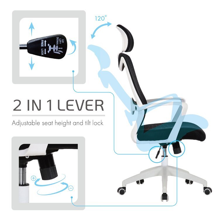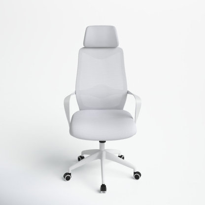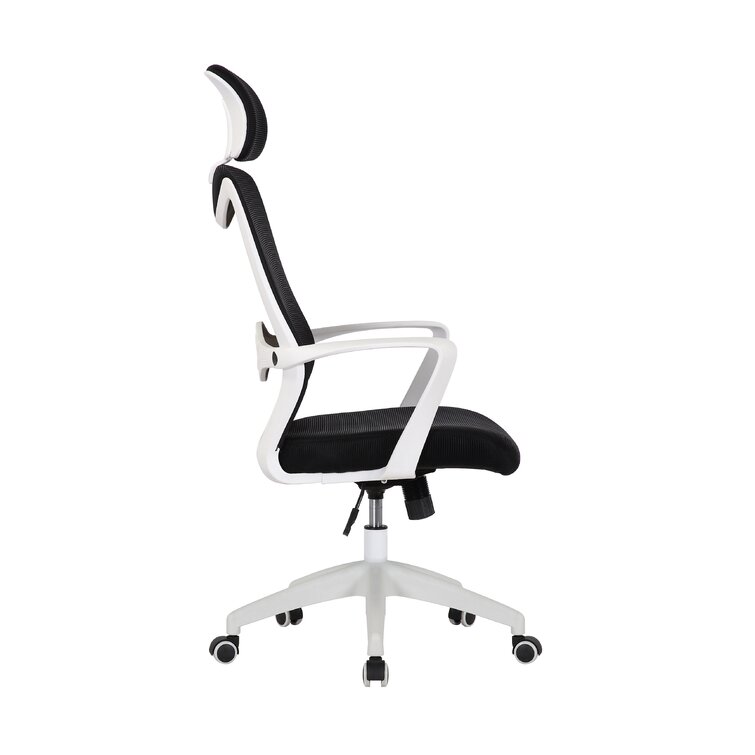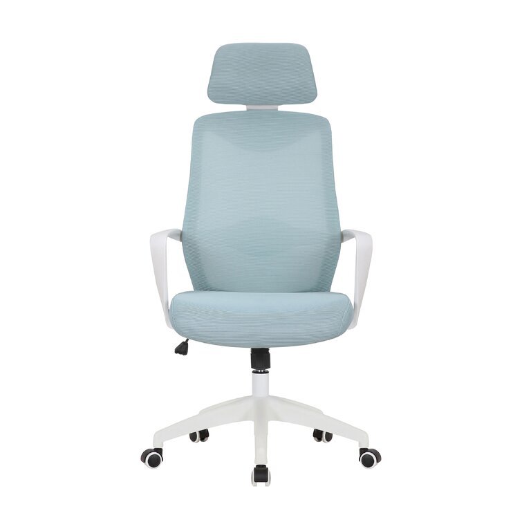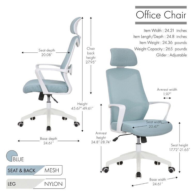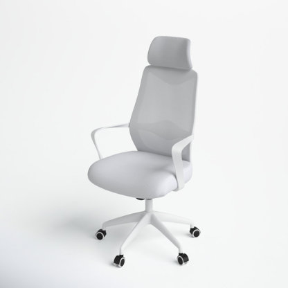 This swivel task chair features mesh fabric that allows air to circulate all day long, keeping you cool while you complete your to-do list. Its sleek frame rests on caster wheels that make mobility a breeze, while fixed, curved arms offer a place to rest your elbows. This chair features an S-shaped back for proper lumbar support for up to eight hours. Seat-height adjustment and a center-tilt mechanism that locks in place let you adjust and move back when you want to stretch out. Plus, this chair has a padded headrest for lots of support while you work in your home office. All the assembly tools you need are included.